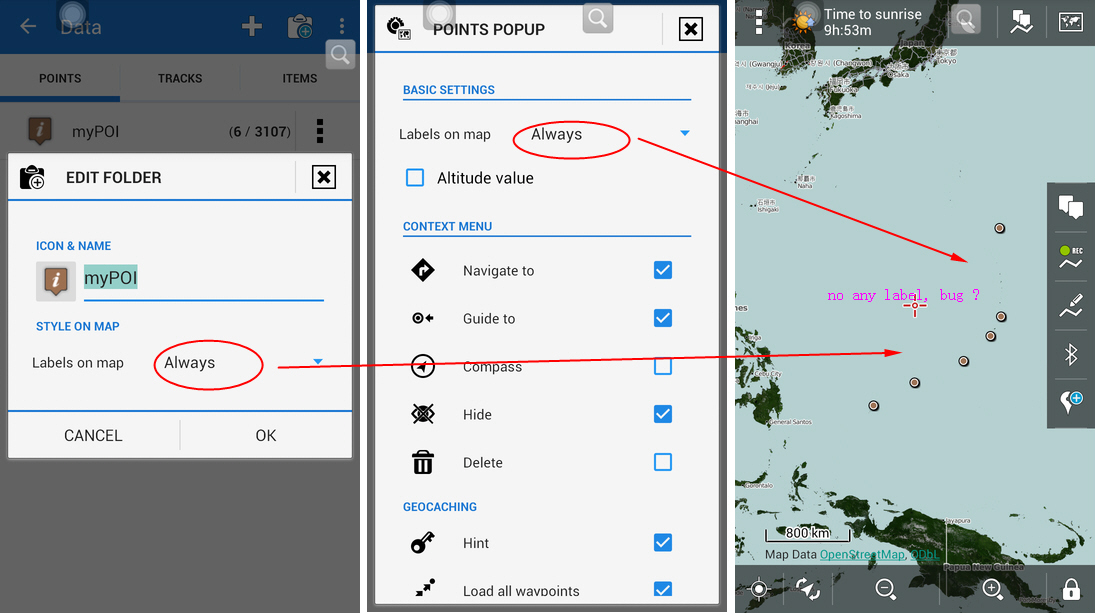 Well, yes, we are still talking about waypoints/POIs and their labels with quick informations to overlook the selected map area with multiple points.