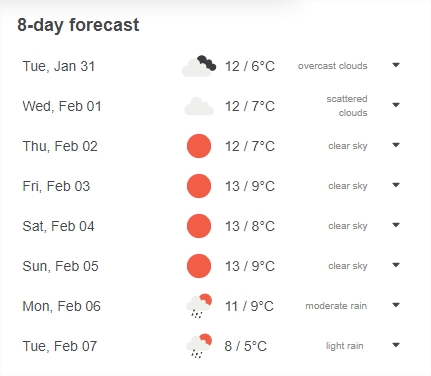 Weather forecast: also show rain and cloud probability