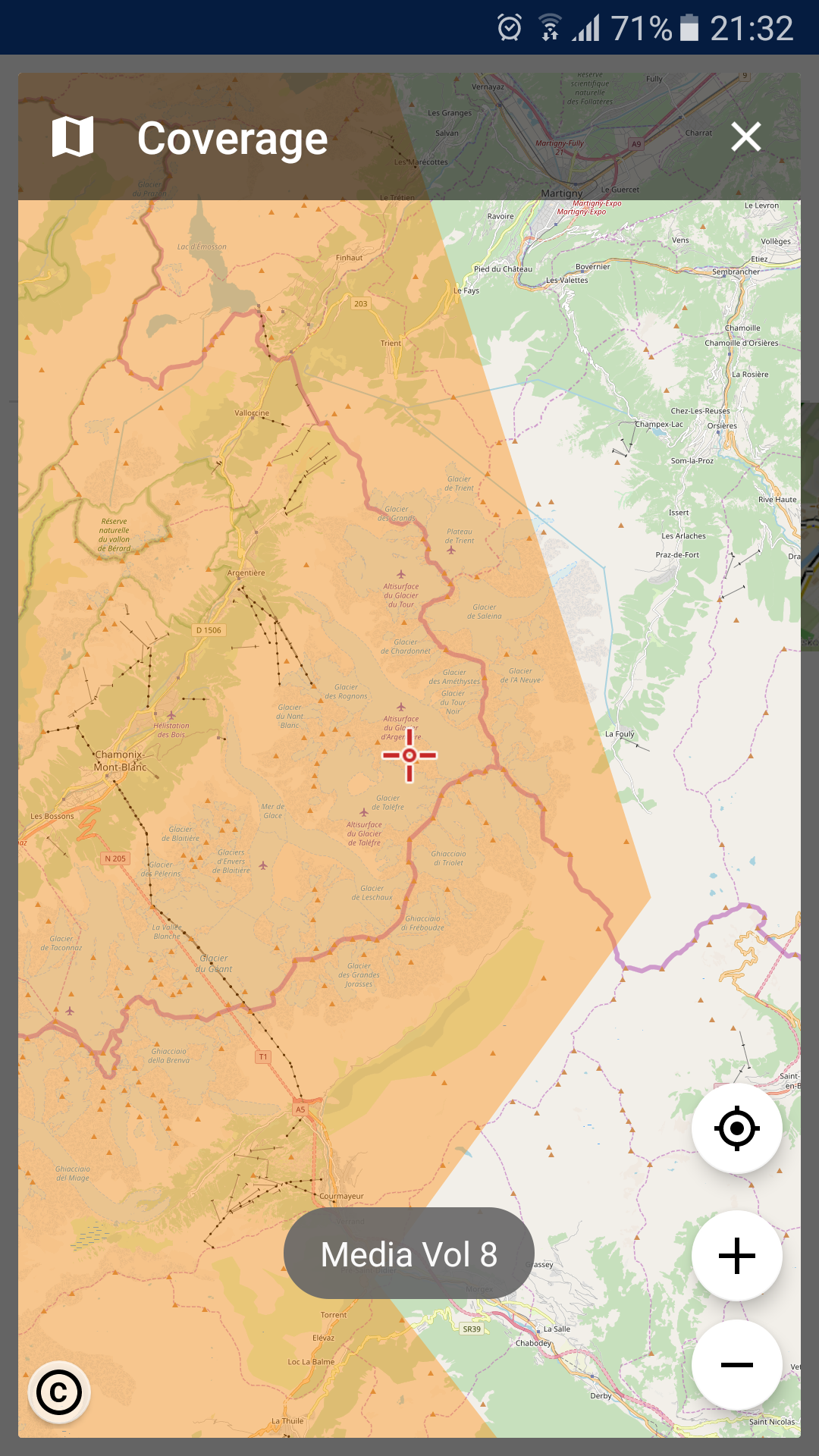 Tour Mont-Blanc - France/Suisse/Italie. It seems the Lomaps Auvergne Rhône Alpes covers enough of Italy and Swiss.You can check this under LoMaps> Auvergne Rhone Alpes ... > MAP Coverage
