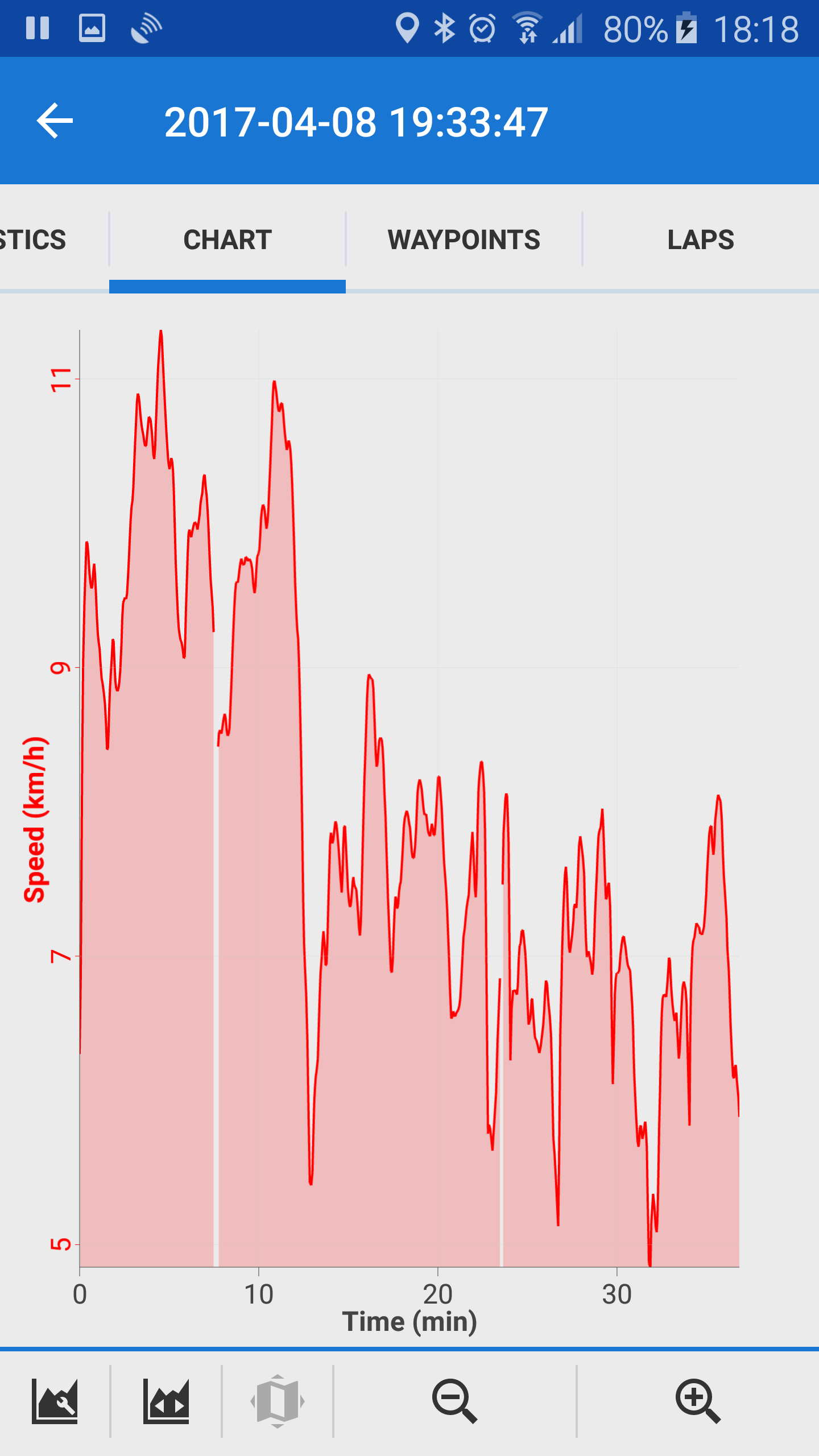 Jogging track was recorded with 8m&2sec interval, record only when moving. No pauses, no sharp turns
