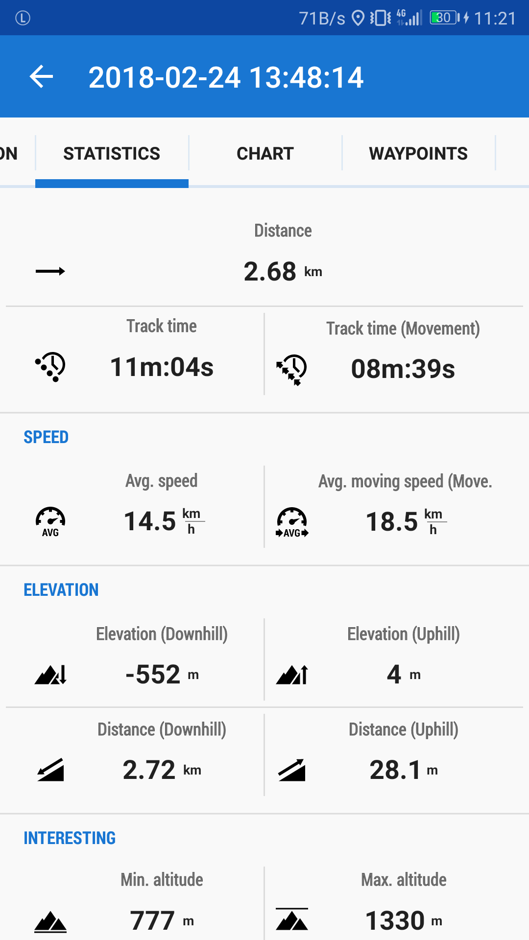 I recorded a ski downhill ride using locus and it seems that the total distance is not correct. Total distance ia smaller than distance downhill... I attached the gpx and a statistics screenshot.