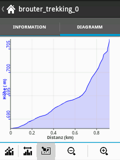 However the problem is that the chart doesn`t show the right altitude of tracks. I use the app BROUTER and the altitude data aren`t correctly displayed. For example my track has a maximum altitude of 953m, but the chart scale for altitude goes only from ca. 923m to 935m. This problem is not only by tracks from BROUTER it`s also by recorded tracks.