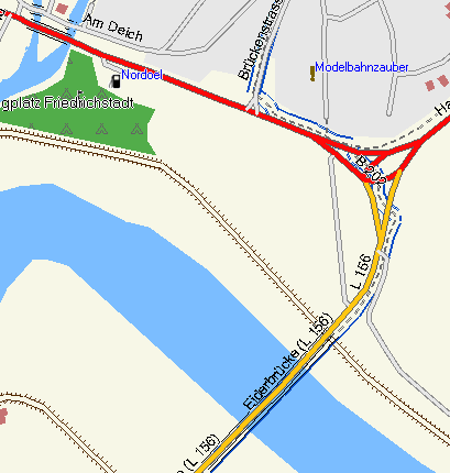 Ich kam von "oben links" auf der B202, in Höhe der Tankstelle "Nordoel" kam die Ansage "in.....Metern geradeaus" - nur die B202 geht dann ~90° nach (links) Osten und ich s(w)ollte aber ~90° nach (rechts) Westen. Geradeaus geht es nur einen Böschung hinunter...