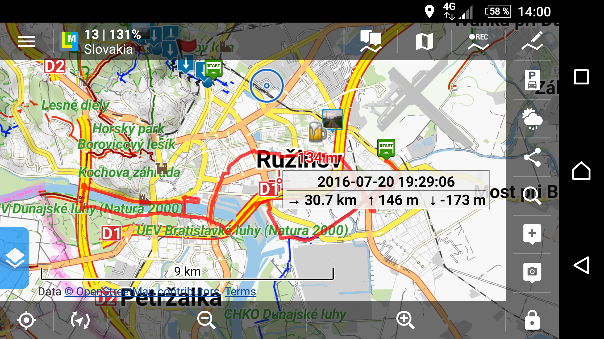 tato funkce vyžaduje pro korektní zobrazení vektorové mapy, tedy buď LoMapy z Locus Store, nebo nějaké jiné jako OpenAndroMaps či podobné. Nicméně to, že se vůbec něco vygenerovalo znamená, že nějaké takové mapy máte, nicméně Locus správně nepoznal, že mapa nemá v území kde trasa prochází, pokrytí. A nebo používáte mapy jiné než LoMapy a vaše trasa je blízko hranice této mapy. Výsledek je stejný.